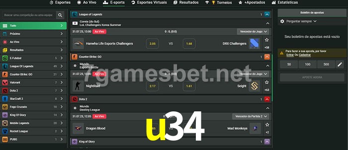 A aposta u34 oferece aos jogadores a experiência mais conveniente de apostas em eSports!